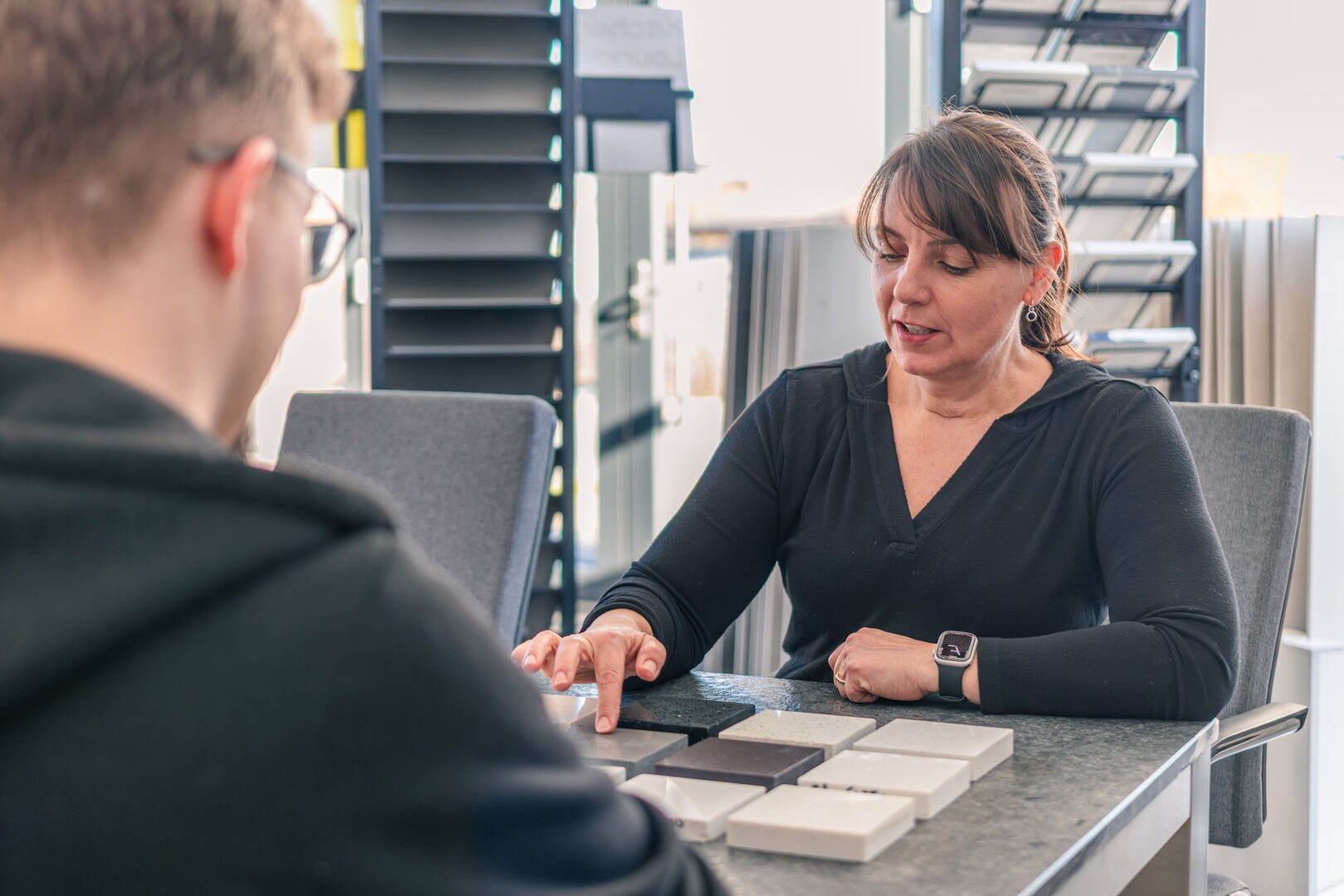 Was in der Ausstellung ausgewählt wird, kann direkt in Planung und Fertigung einfließen. Maße, Formate und Oberflächen werden abgestimmt und in die weitere Projektplanung integriert. Die Ausstellung bildet damit den Übergang zwischen Idee und Umsetzung. Sie schafft Sicherheit bei der Materialwahl und legt die Grundlage für ein Ergebnis, das nicht nur optisch überzeugt, sondern auch technisch und funktional durchdacht ist.