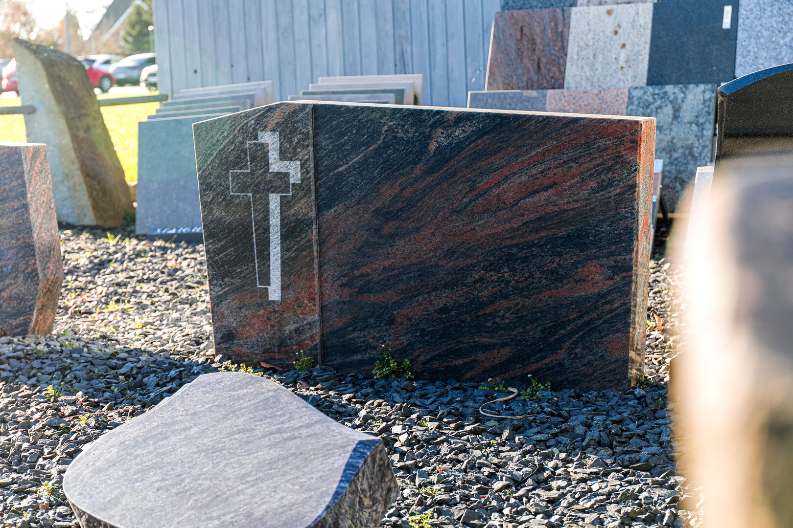 Jeder Mensch war einzigartig, und genauso individuell darf auch das Grabmal gestaltet sein. Form, Material und Oberfläche werden bewusst gewählt und aufeinander abgestimmt. Wir fertigen klassische Grabsteine ebenso wie moderne Grabstelen oder schlichte Urnengrabsteine. Auch individuell gestaltete Grabmale und Sonderformen aus Naturstein, Marmor, Bernstein oder Granit sind möglich. Entscheidend ist, dass die Gestaltung zur Persönlichkeit des Verstorbenen und zum Gesamtbild des Friedhofs passt. In einem persönlichen Gespräch klären wir zunächst die Rahmenbedingungen. Dazu gehören unter anderem die zulässige Größe, die gewünschte Form, die passende Schriftart und die Frage, ob Symbole oder besondere Elemente integriert werden sollen. Gerade im Kreis Warendorf gelten unterschiedliche Friedhofssatzungen, die beachtet werden müssen. Wir kennen diese Vorgaben und beraten entsprechend, sodass Gestaltungsspielraum und Regularien miteinander in Einklang gebracht werden. Ziel ist ein Grabmal, das zurückhaltend wirkt und dennoch Individualität ausdrückt.