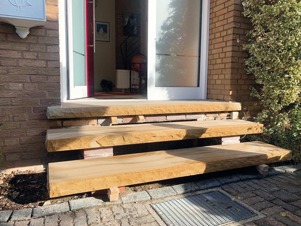 In vielen Häusern ist die Treppenkonstruktion aus Beton gefertigt. Im Rohbau wirkt sie funktional, jedoch noch nicht als gestalterisches Element. Durch einen Naturstein- oder Fliesenbelagbelag erhält sie eine hochwertige, langlebige Oberfläche, die sich harmonisch in das Gesamtbild des Hauses einfügt. Entscheidend sind präzise Stufenmaße, gleichmäßige Vorderkanten und eine exakte Ausrichtung aller Elemente. Die Oberflächen müssen rutschhemmend ausgeführt werden, insbesondere wenn die Treppe stark frequentiert ist. Natursteintreppen werden verklebt oder in Dickbett gesetzt. Die Verarbeitung erfolgt mit besonderer Sorgfalt, da bereits geringe Maßabweichungen im fertigen Zustand deutlich sichtbar wären.